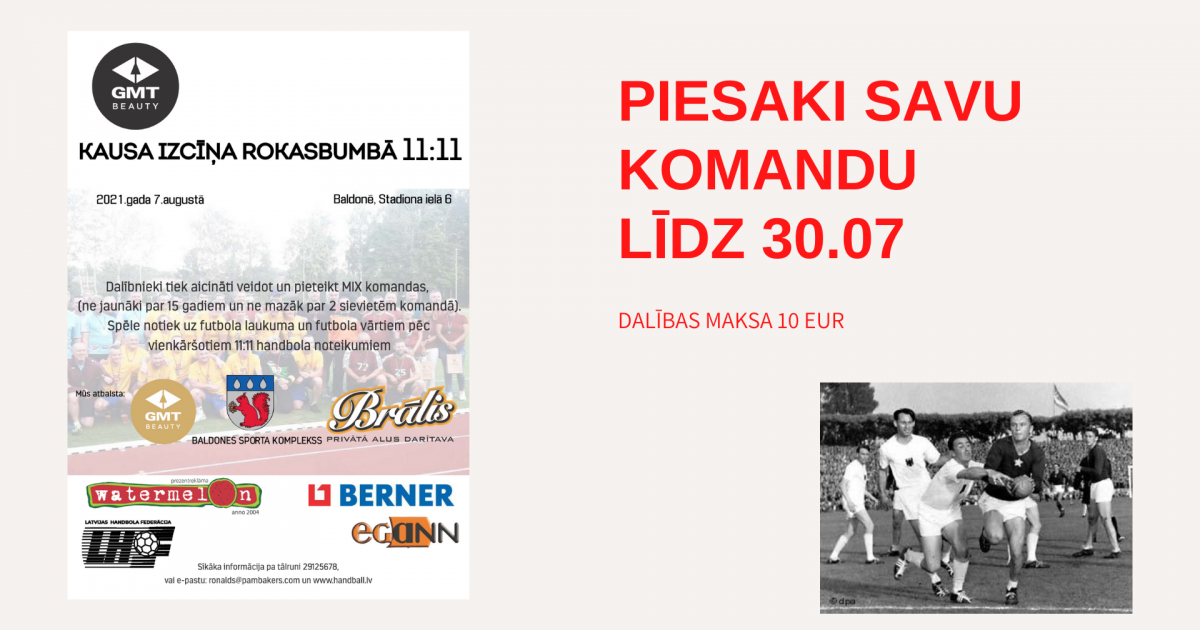 Vēstures elpa Latvijas handbolā – piesaki savu komandu dalībai 11:11 handbola turnīram